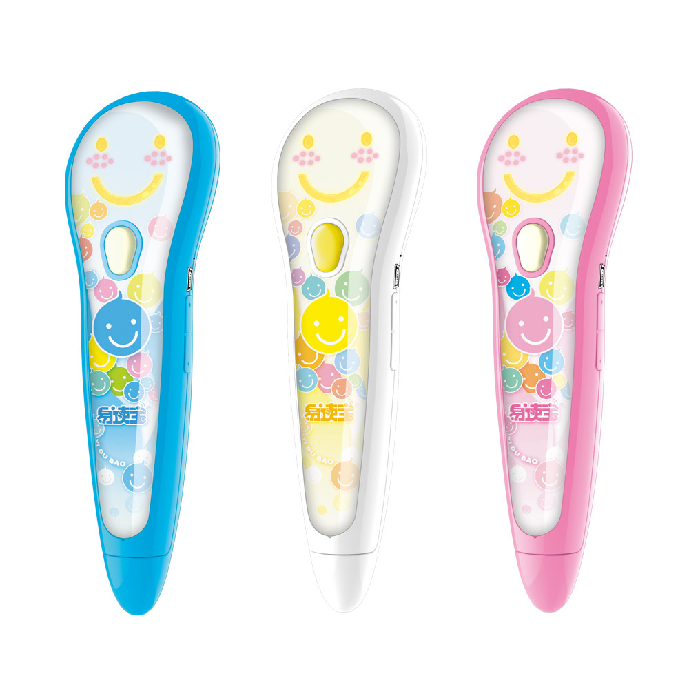 | Features | 1.Cute appearance: Cute design with different color, and using non-toxic, tasteless, non- radioactive safety and environmental protection material. 2.Book selection function: Book arbitrary choice of the machine, different learning content unlimited switching and adds learning fun. 3.Recording function: Children can keep a diary by talking to the pen. 4.Music player: supports MP3 format files, point of reading selections, volume adjustable, easy to operate. 5.Large memory storage capacity: 4G oversized machine, can be expand to 8G. 6.U disk function: heart download nursery rhymes nursery rhymes and reading materials in English, USB highspeed download. 7.Automatic shutdown: Standby 5 minutes intelligent automatic shutdown, to assist parents to protect theirchildren’s hearing and save power. 8.Sentence translation: word, statement simultaneous translation, deepen understanding and improvethe English proficiency of a good helper. 9.Pronunciation: high-definition standard Mandarin Soundtrack children sound, that is the point that read intothe infinite joy of learning. |