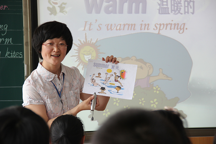Each student has one pen in hand. They can answer the question by touch the answer sheet. Then the results will show. The teacher can analyse the teaching effect easily.