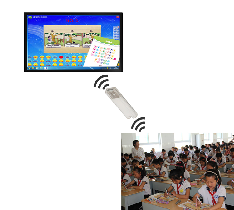 Teachers can walk around the classroom with one pen and one book, but not by controlling the computer at the fixed desk. All students can see the contents on the Whiteboard or TV.