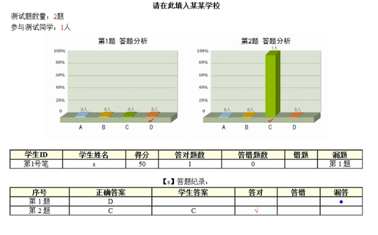 The testing result analysis: very easy to find the learning results for whole class and each student.