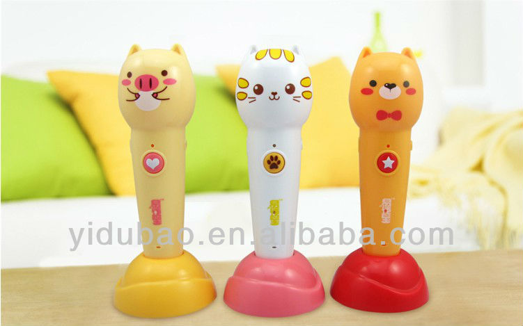 1.Cute appearance: Cute design(Pig,Tiger,Bear,Cat) with different color, and using non-toxic, tasteless, non- radioactive safety and environmental protection material. 2.Book selection function: Book arbitrary choice of the machine, different learning content unlimited switching and adds learning fun. 3.Recording function: Children can keep a diary by talking to the pen. 4.Music player: supports MP3 format files, point of reading selections, volume adjustable, easy to operate. 5.Large memory storage capacity: 4 GB or 8GB Memory Card for your choice. 6.Download function: Heart download nursery rhymes nursery rhymes and reading materials in English,USB high speed download. 7.Automatic shutdown: Standby 5 minutes intelligent automatic shutdown, to assist parents to protect their children’s hearing and save power. 8.Sentence translation: word, statement simultaneous translation, deepen understanding and improve the English proficiency of a good helper. 9.Pronunciation: high-definition standard Mandarin Soundtrack children sound, that is the point that read into the infinite joy of learning.  |