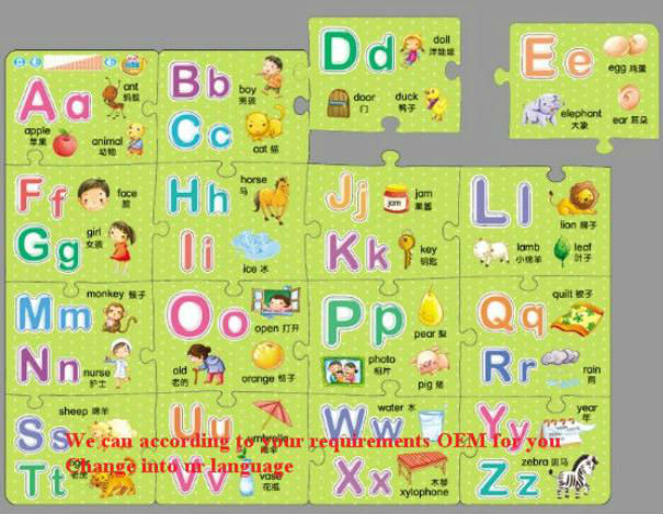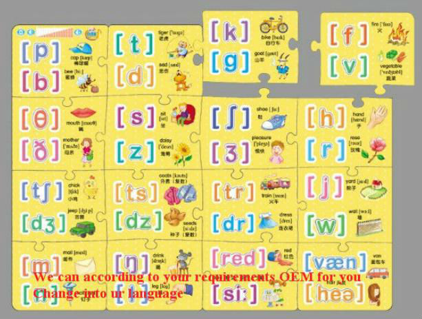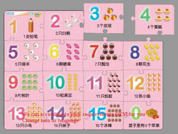 This set included 3 cases :Letter, Number, phonetic,each with 16 puzzle,each puzzle with content and relative photograph. Kids can make up different combination with the puzzles. It’s really funny and help to develop their handling capability and logical thinking