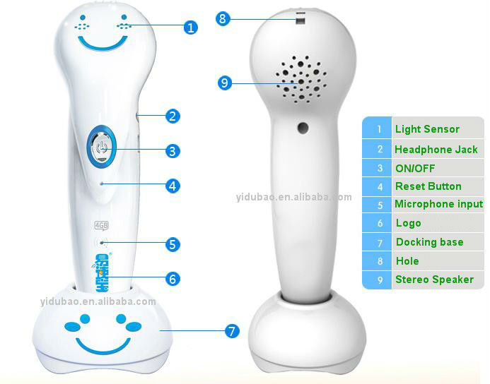 | 1.Point to read-anywhere you point,it will sound immediately. 2.Repeat-You can point it again and again at same place. 3.Record-Compare kids own voice with origin one. 4.MP3 player-Listen more music from downloading song. 5.Interactive games let kid learn from fun. |