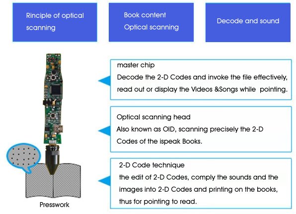 Kids just simply power on the pen and point to the boIt is accompanied with our magic talking pen.