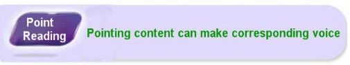 | Features | 1.Reading any words or sentence by only touching the text in sounds book